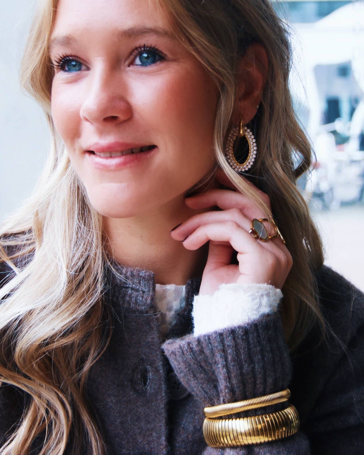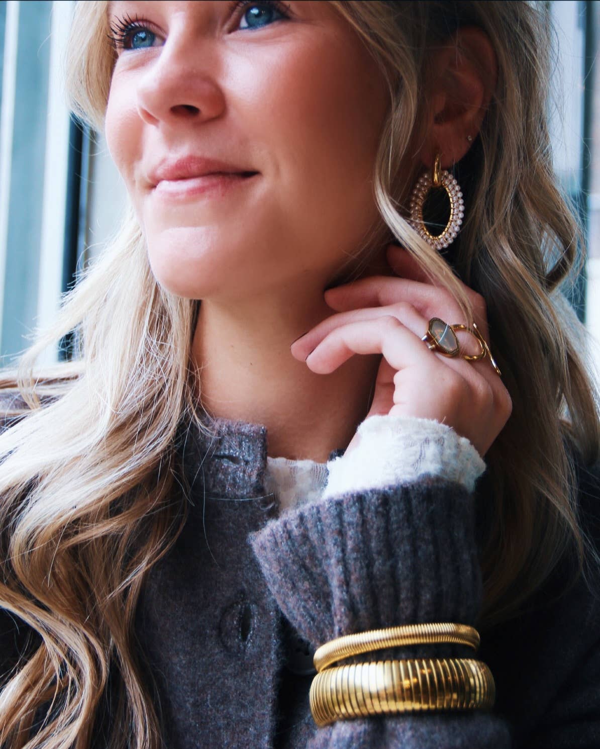 Breiter Ohrring mit ovalem Facettenanhänger – Perlen